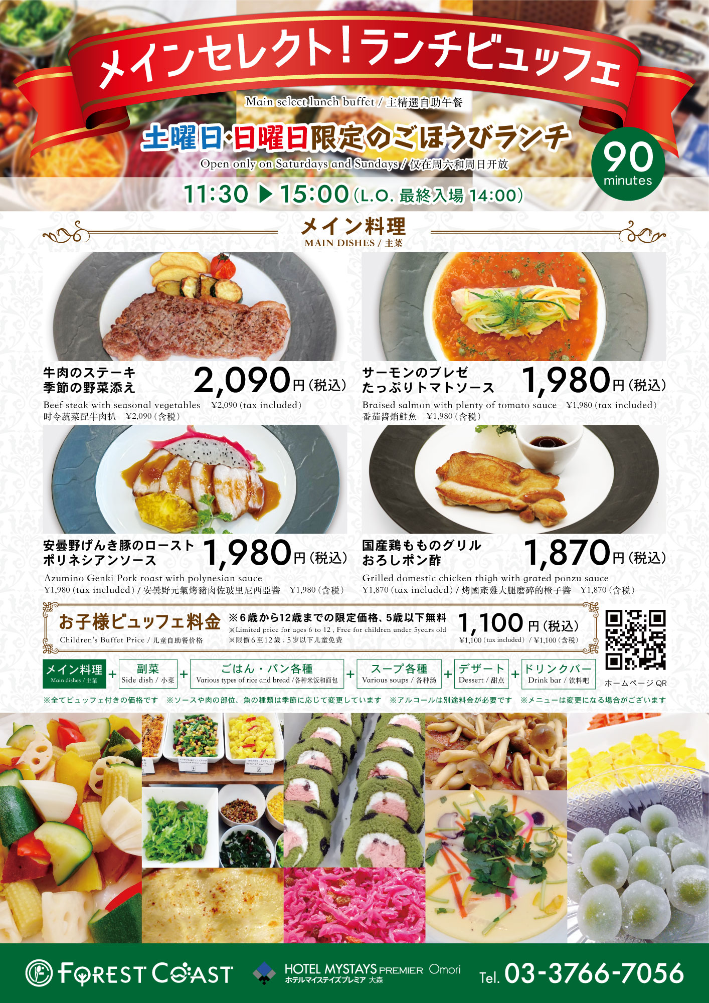 時間無制限でランチビュッフェをお楽しみいただけます。